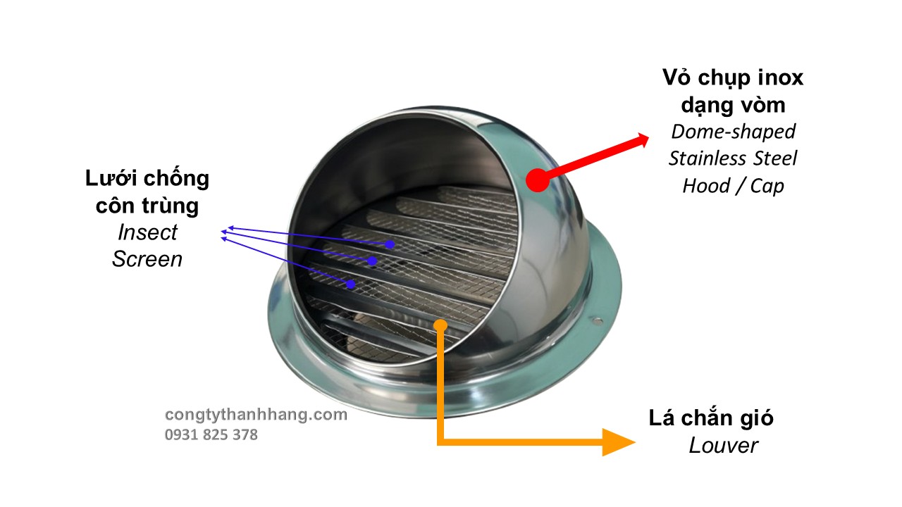 Cấu tạo miệng gió chụp mưa inox
